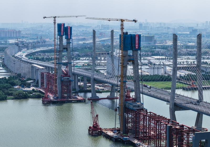 深江铁路跨磨刀门水道主桥东主塔封顶